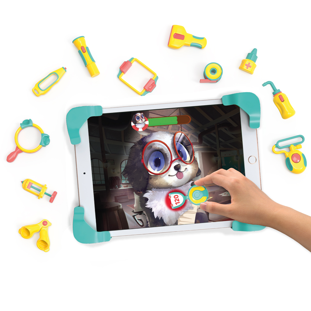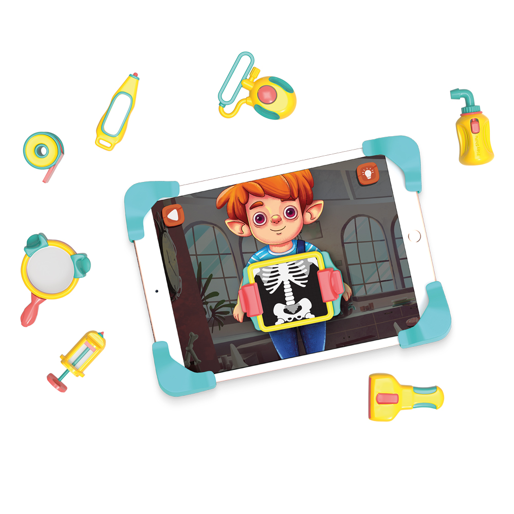 Tacto Doctor Set (Doctor Set): un kit de juego de rol con 12 herramientas médicas en miniatura (estetoscopio, termómetro, radiografía, ultrasonido, etc.), que se usa junto con una aplicación para tablet que contiene 3 juegos interactivos con más de 100 niveles. Niños de 4-8 años pueden aprender sobre el cuerpo humano, empatía, primeros auxilios y habilidades cognitivas.