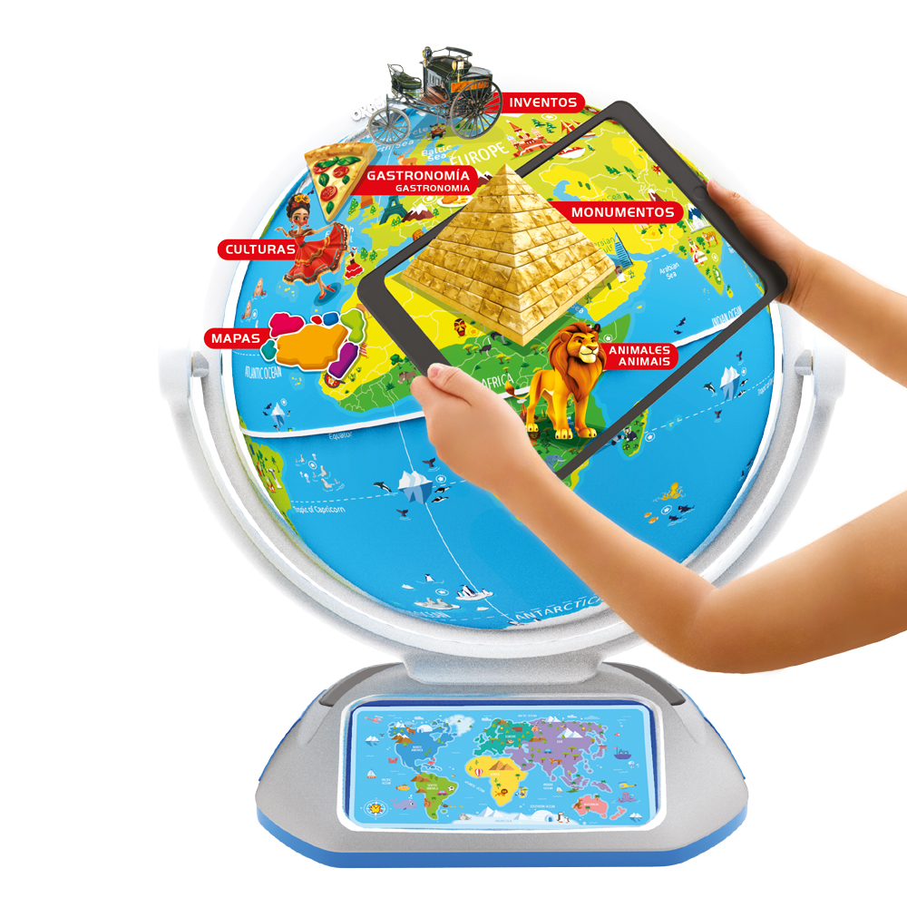 Orboot Earth Explorer: un globo interactivo de 10″ que cobra vida con realidad aumentada. Contiene más de 400 maravillas del mundo y más de 1.000 datos fascinantes sobre animales, monumentos, culturas, inventos, mapas y gastronomía. Incluye paneles “Zap-On”, stylus mágico con luz negra, pasaporte, guía de inicio, etc.