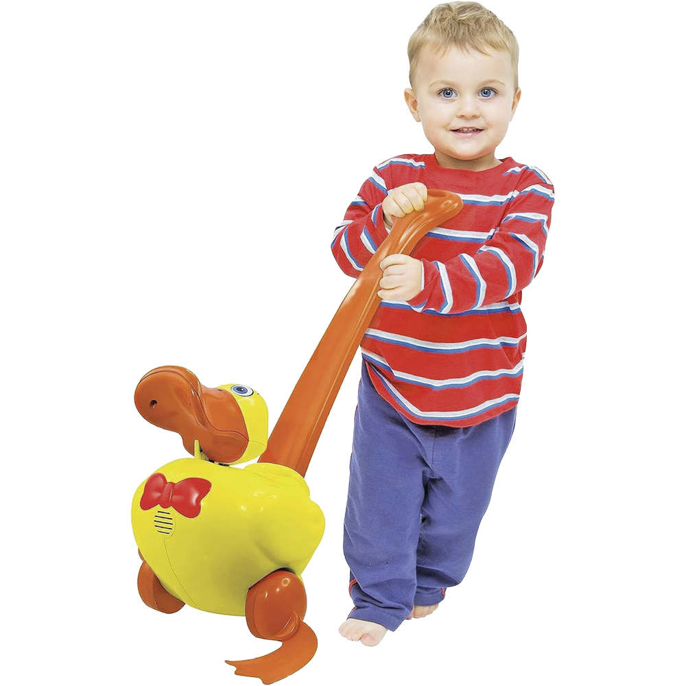 Waddles EL PATO QUE ANDA, es un juguete preescolar para caminar / empujar más vendido. Perfecto para los más pequeños que empiezan a caminar, anímalos con la ayuda de Waddles. Simplemente empújalo y su cabeza se balancea de lado a lado, sus pies se agitan y luego comienza a graznar.