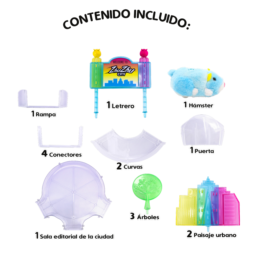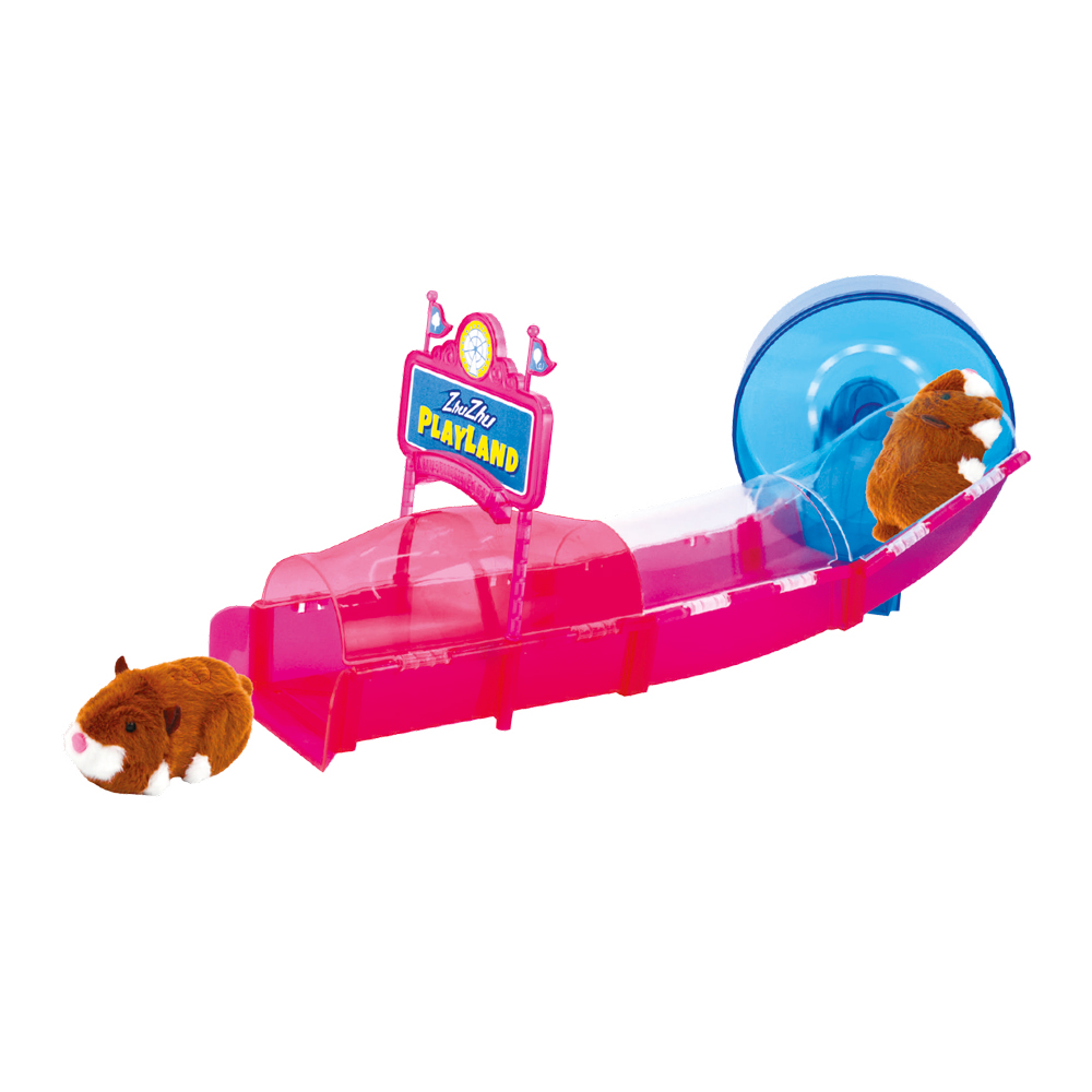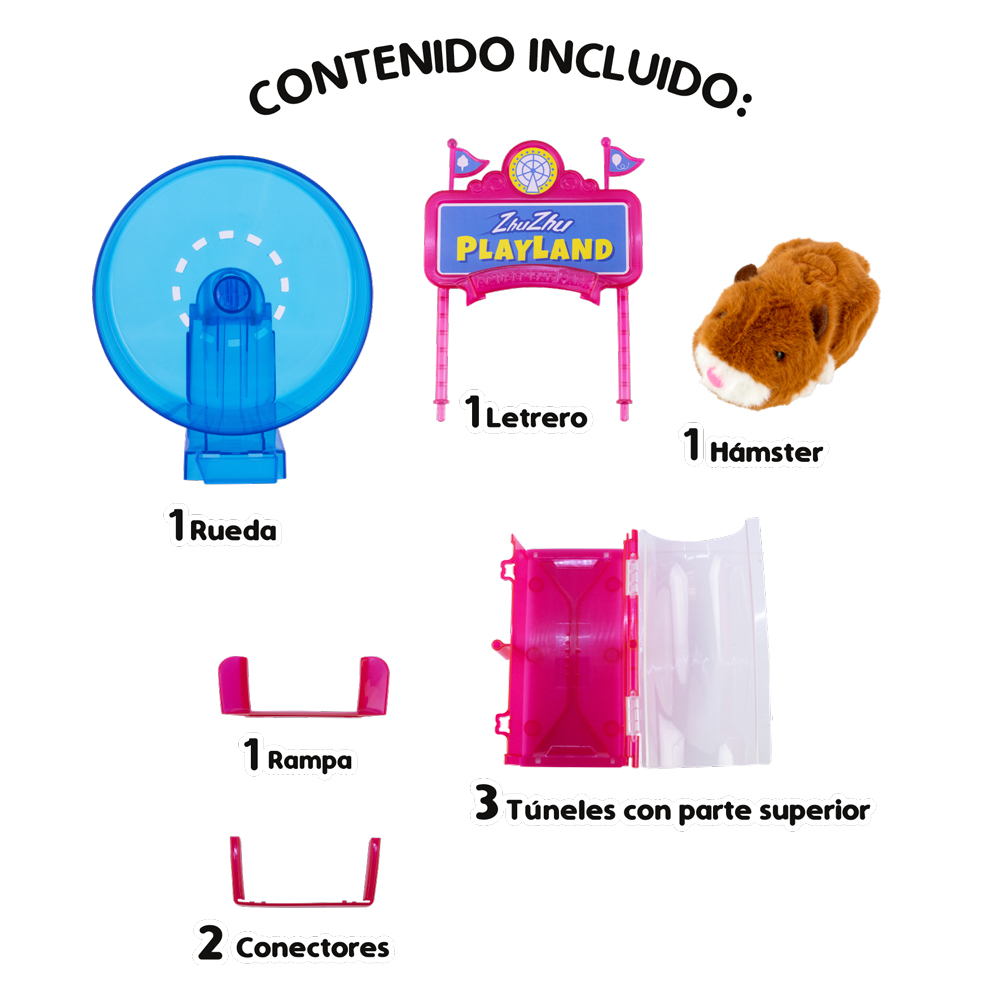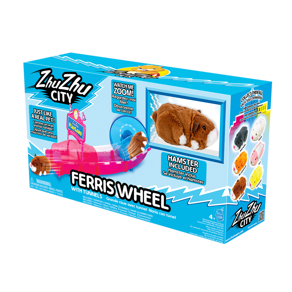 Sube por el túnel y rodea la noria, ¡tu mascota ZhuZhu dará vueltas y vueltas! El juego se conecta con todos los demás sets ZhuZhu.